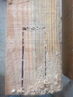 Au niveau des zones compliquées, on n'échappe pas à des découpes en biais et des délignages. On fait tout ça à la circulaire et à la scie sauteuse.
